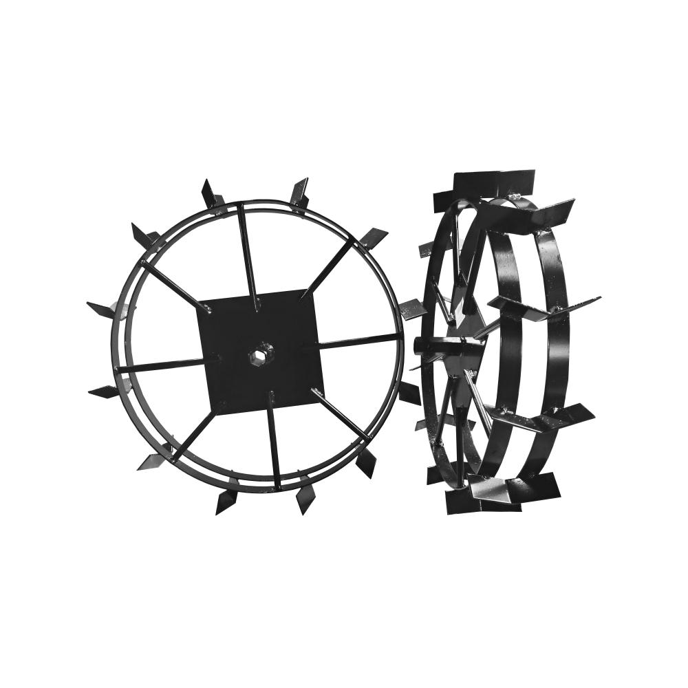 Состоит из платформы с посадочной шестигранной ступицей, двух ободов и галок. Для изменения расстояния между грунтозацепами можно дополнительно приобрести удлинители.