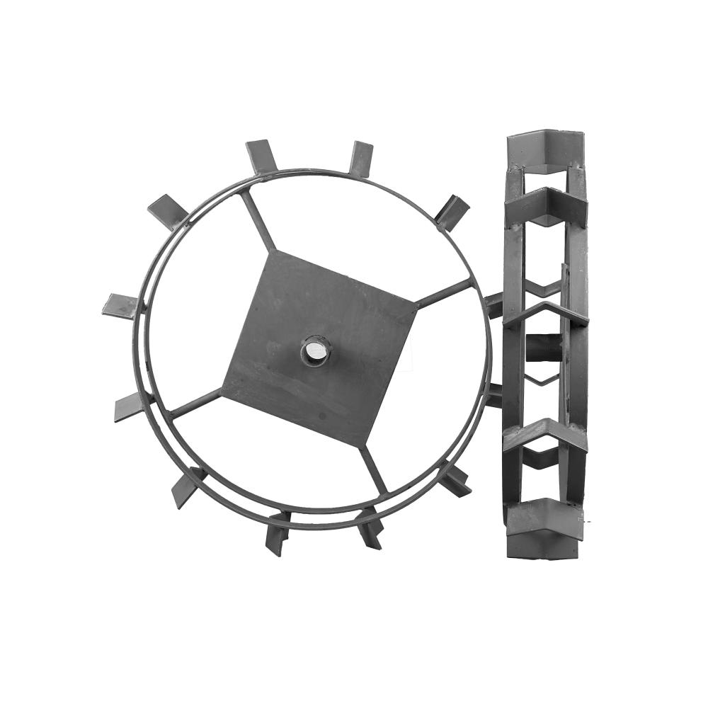 Состоит из платформы с посадочной втулкой, двух ободов и галок. Для изменения расстояния между грунтозацепами можно дополнительно приобрести удлинители.